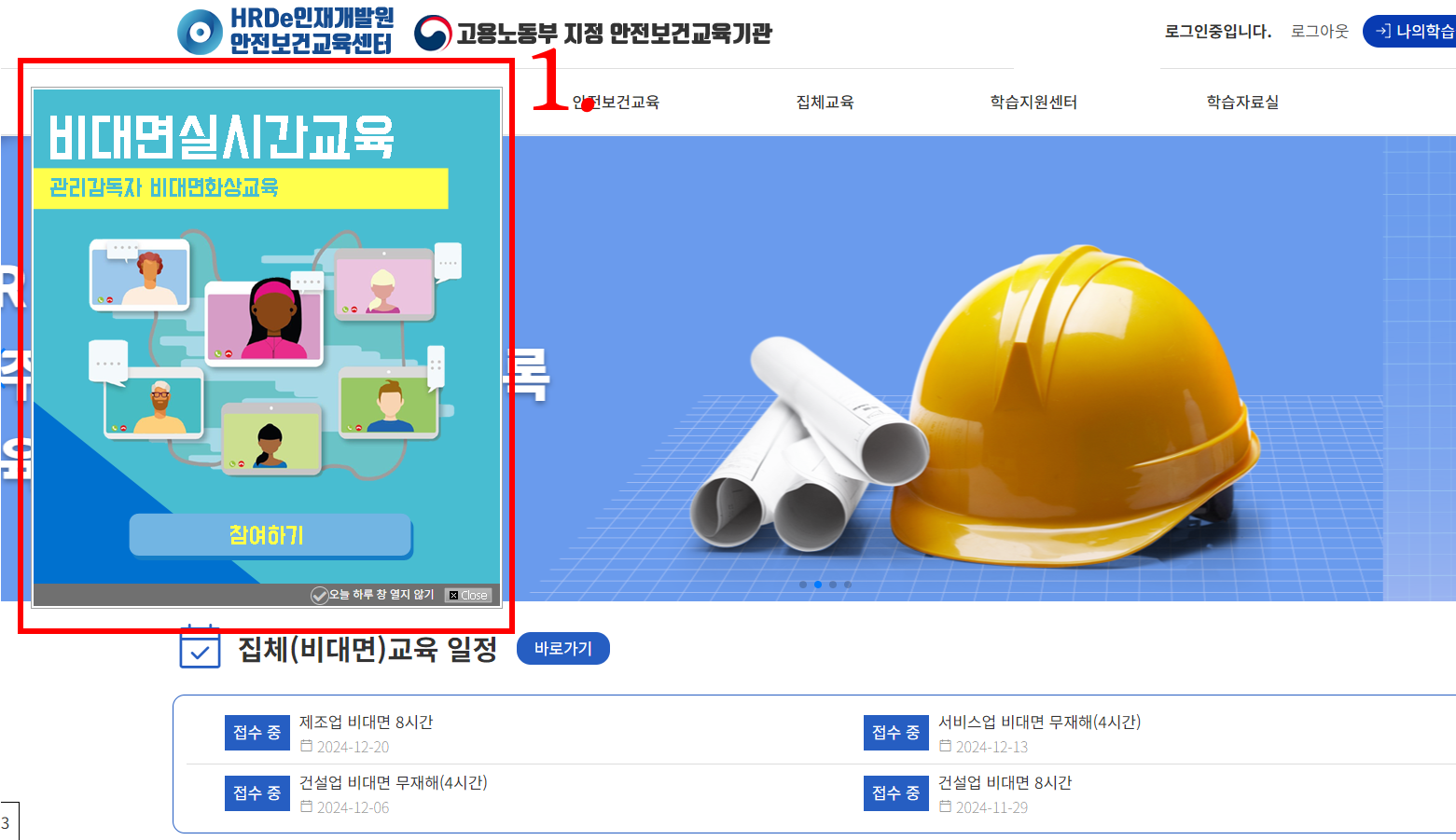 | 1. 교육 참여 팝업 |