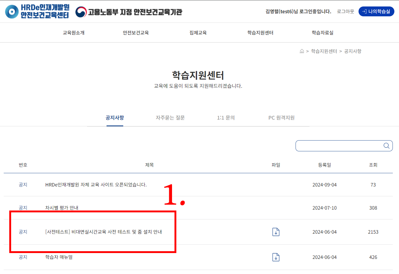 zoom 교육전 사전테스트 공지사항 내용을 읽고 준비하시기바랍니다.